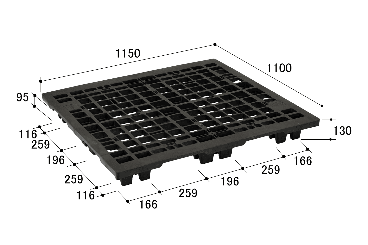 | 寸法 | 1150×1100×130H (差込口高さ95mm) ネスティング型4方差し ハンドリフト対応 |