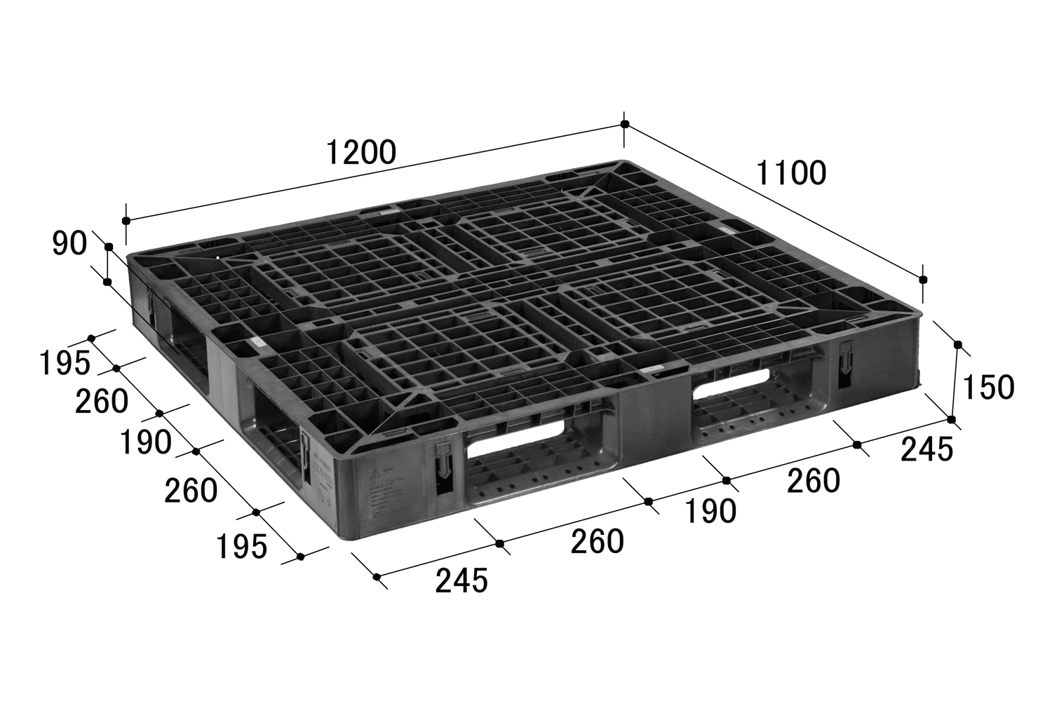 | 寸法 | 1200×1100×150H (差込口高さ90mm) 片面使用4方差し ハンドリフト対応 |