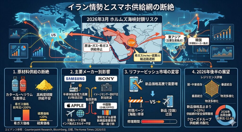 【2026年緊急統合レポート】イラン情勢が揺るがすスマートフォン産業の全貌:断絶する供給網と変容する市場構造
