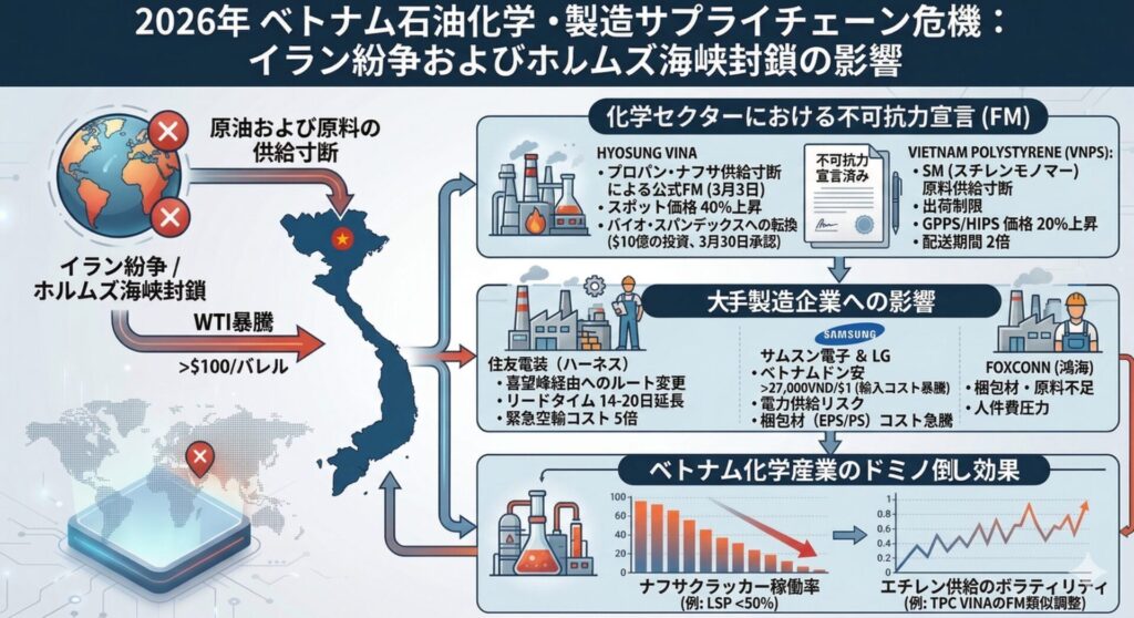 ベトナムの製造・輸出を支える主要プレイヤーたちは、2026年3月の「中東発・樹脂サプライチェーン断絶危機」という未曾有の事態に直面している。