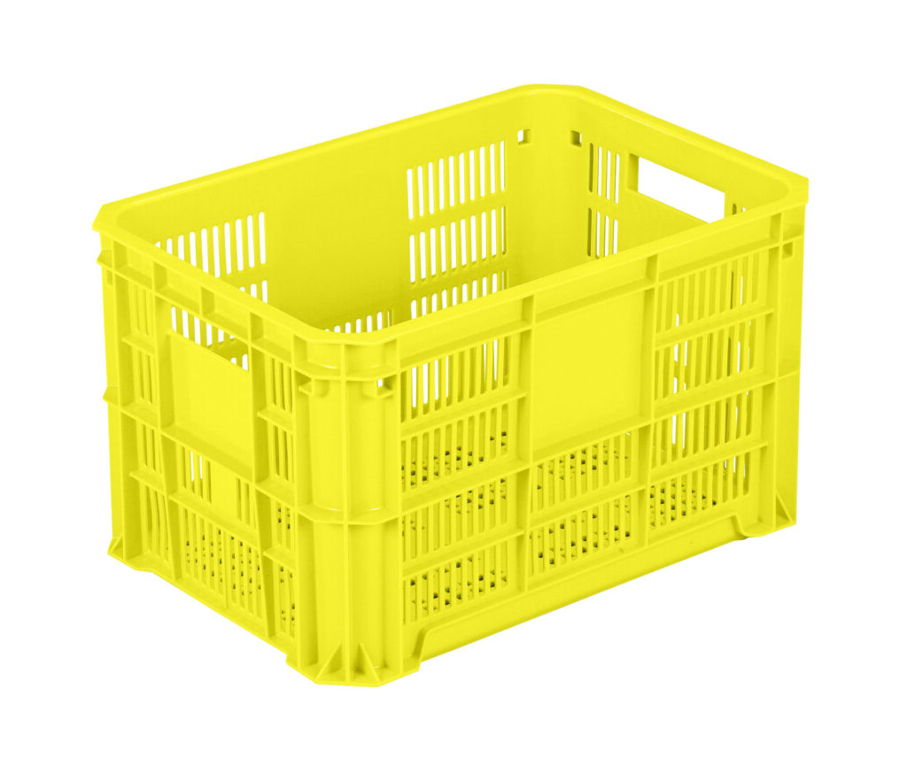 - PP(ポリプロピレン)製による剛性 PE製に比べて素材が硬く、「たわみ」が少ないのが特徴です。重い作物を入れて積み上げた際も、コンテナ自体の歪みが抑えられ、安定したスタッキングが可能です。