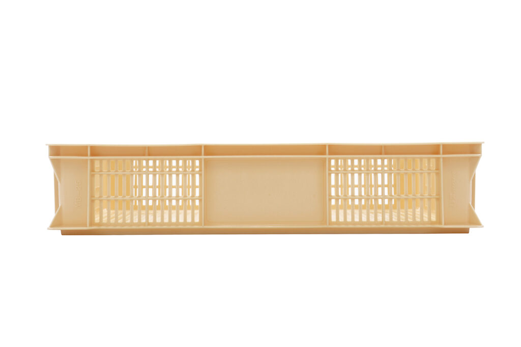 - PP(ポリプロピレン)製による耐久性 硬質なPP素材を採用。耐衝撃性に優れ、自動選別ラインのコンベア上でも歪むことなくスムーズに搬送できます。